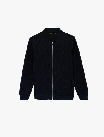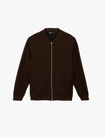 Uzun Kollu Dokulu Kapitone Fermuarlı Mevsimlik Ceket Sepete Ekle