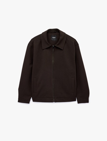 Regular Fit Uzun Kollu Cepli Gömlek Yaka Fermuarlı Spor Ceket