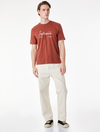 Regular Fit Kısa Kollu Bisiklet Yaka Pamuklu Baskılı Tişört Sepete Ekle