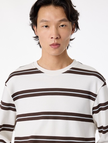 Regular Fit Pamuklu Çizgili Uzun Kollu Bisiklet Yaka Tişört