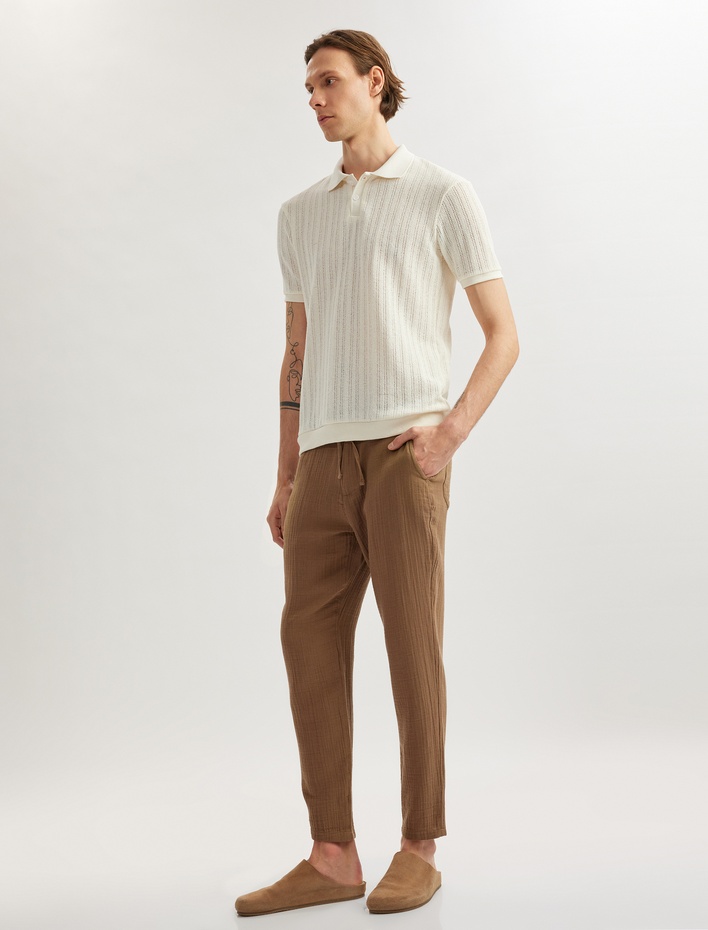 Pamuklu Müslin Chino Cep Detaylı Beli Bağcıklı Pantolon Sepete Ekle