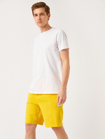 Slogan Baskılı Şort Beli Bağcıklı Dar Kesim Cep Detaylı