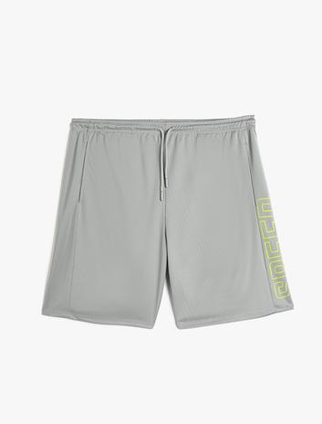 Spor Şort Beli Bağcıklı Slogan Baskılı Cep Detaylı