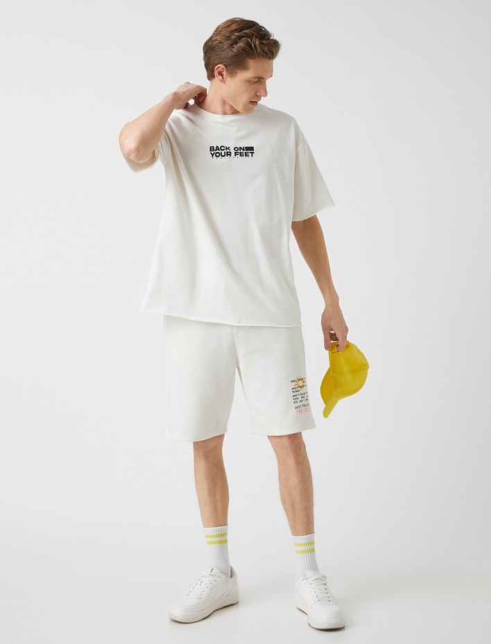 Spor Şort Beli Bağcıklı Slogan Baskılı Cep Detaylı Sepete Ekle