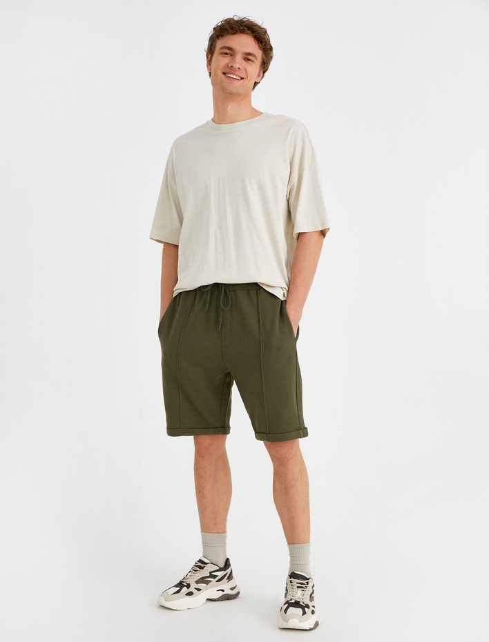 Rahat Kalıp Pamuk Viskon Karışımlı Bermuda Beli Bağcıklı Spor Şort Sepete Ekle