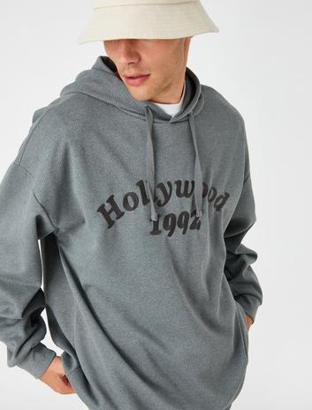 Oversize Kapşonlu Sweatshirt Yazı Baskılı Sepete Ekle