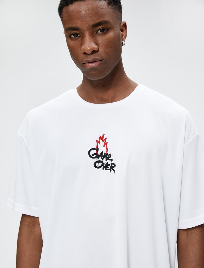 Oversize Tişört Slogan Baskılı Bisiklet Yaka Pamuklu Sepete Ekle