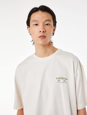 { "id": "8684969142883", "name": "Oversize Kısa Kollu Pamuklu Bisiklet Yaka Arkası Baskılı Tişört", "taxonomy":["MENSWEAR","CASUAL","MEN","JERSEY","TSHIRT SS"], "currency": "TRY", "unit_price": 499.99 , "unit_sale_price": 499.99 , "url": "https://www.koton.com/oversize-kisa-kollu-pamuklu-bisiklet-yaka-arkasi-baskili-tisort-ekru-4160172-1/", "stock": 9, "color": "EKRU", "size": "L", "product_image_url": "https://ktnimg2.mncdn.com/products/2026/03/30/3218831/e6e80887-7222-4163-9d7b-2e4bda7c2853_size870x1142.jpg" }