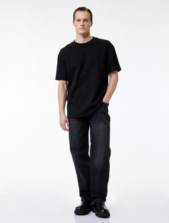 Pamuklu Kısa Kollu Bisiklet Yaka Tok Kumaş Oversize Basic Tişört
