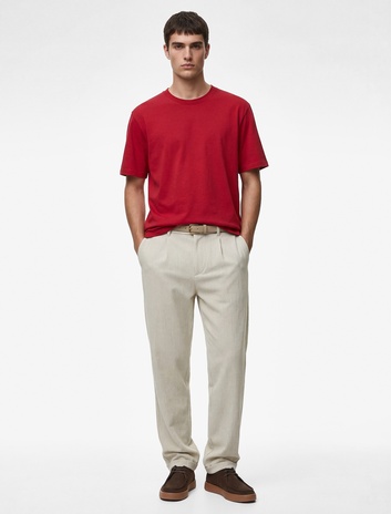 Rahat Kalıp Cepli Viskon Karışımlı Pileli Kumaş Pantolon