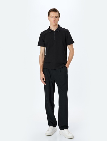 Kısa Kollu Regular Fit Pamuklu Yarım Fermuarlı Tişört Sepete Ekle