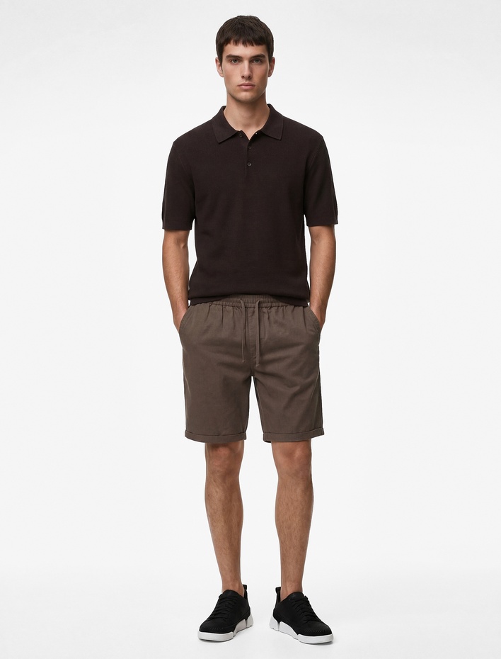Regular Fit Kısa Kollu Keten Karışımlı Polo Yaka Triko Tişört