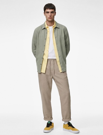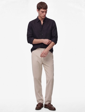 Regular Fit Düğmeli Yaka Uzun Kollu Keten Gömlek
