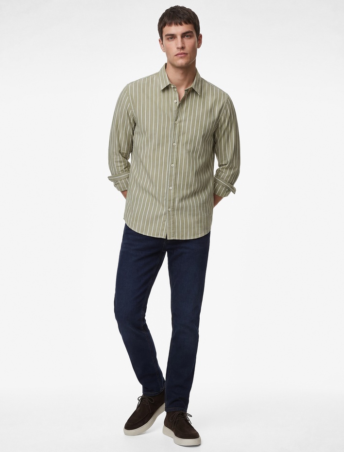 Klasik Yaka Regular Fit Uzun Kollu Pamuklu Çizgili Gömlek
