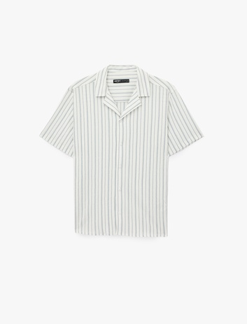 Regular Fit Kısa Kollu Devrik Yaka Çizgili Gömlek Sepete Ekle