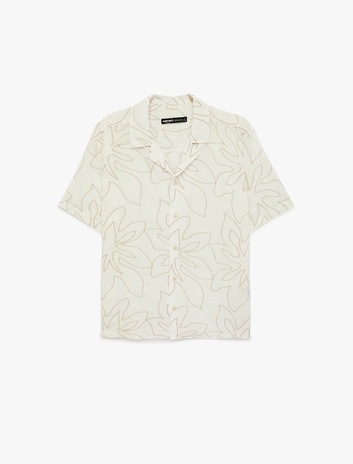 Regular Fit Kısa Kollu Viskon Karışımlı Nakışlı Devrik Yaka Gömlek Sepete Ekle