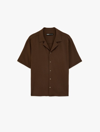 Kısa Kollu Viskon Karışımlı Krinkıl Kumaş Devrik Yaka Gömlek Sepete Ekle