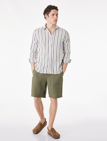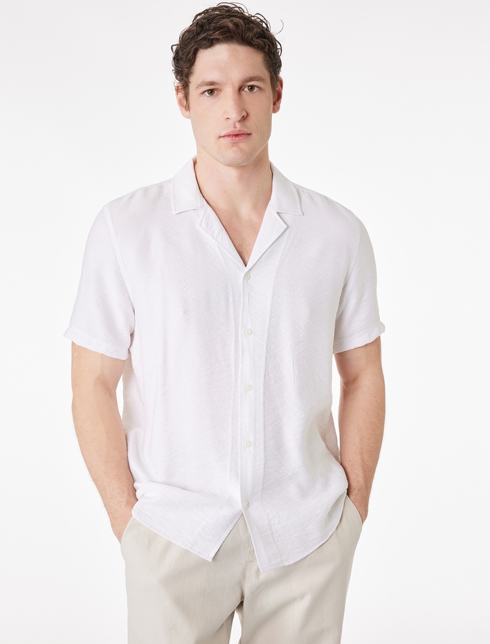 Regular Fit Kısa Kollu Apaş Yaka Viskon Keten Karışımlı Gömlek Sepete Ekle