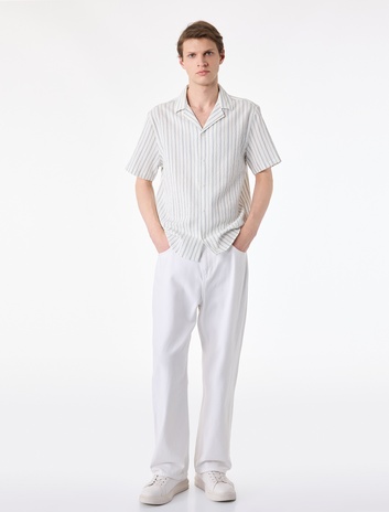 Regular Fit Kısa Kollu Devrik Yaka Çizgili Gömlek Sepete Ekle
