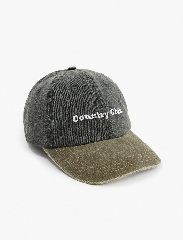 Erkek Nakışlı Pamuklu Renk Kontrastlı Kep Şapka