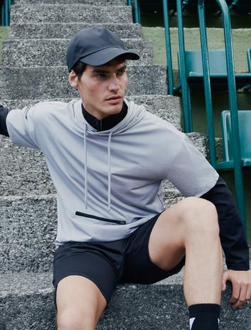 Spor Tişört Kapşonlu Fermuar Cepli Kısa Kollu Sepete Ekle