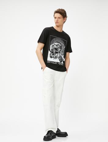 Uzakdoğu Baskılı Tişört Bisiklet Yaka Dar Kesim Pamuklu