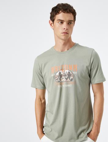 Baskılı Tişört Bisiklet Yaka Kısa Kollu Pamuklu