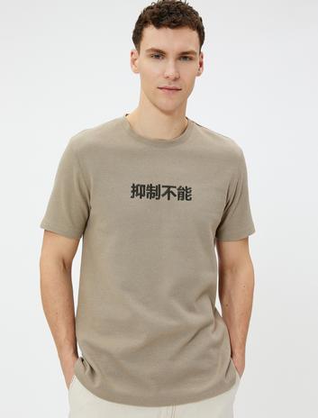 Uzak Doğu Nakışlı Tişört Bisiklet Yaka Kısa Kollu Dokulu