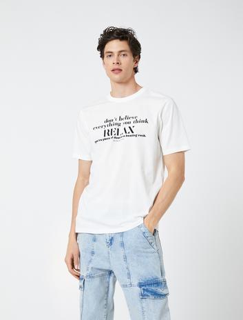 Slogan Baskılı Tişört Bisiklet Yaka Kısa Kollu Pamuklu Sepete Ekle