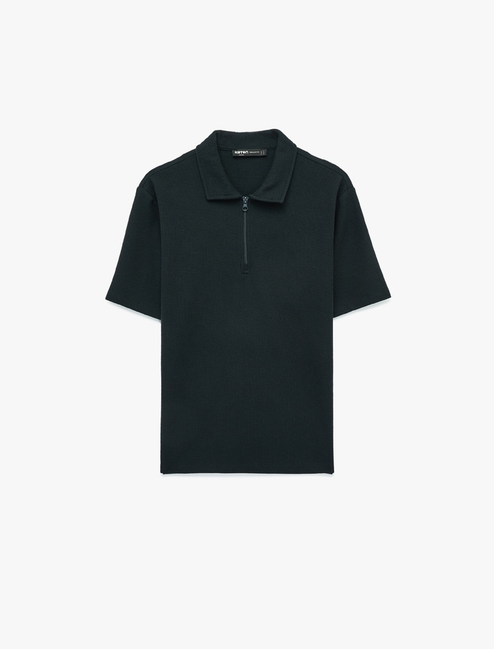Regular Fit Kısa Kollu Waffle Dokulu Yarım Fermuarlı Polo Yaka Tişört Sepete Ekle