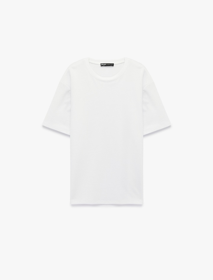 Kısa Kollu Dikiş Detaylı Bisiklet Yaka Pamuklu Oversize Tişört Sepete Ekle