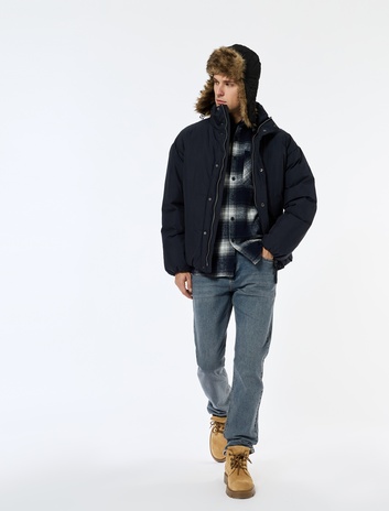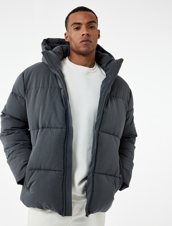 Dik Yaka Cep Detaylı Fermuarlı Kışlık Şişme Mont