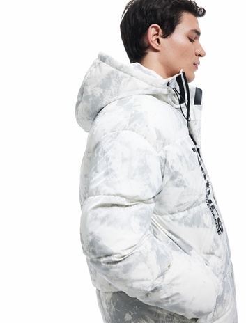 Fermuarlı Cep Detaylı Desenli Baskılı Kapşonlu Kışlık Şişme Mont Sepete Ekle