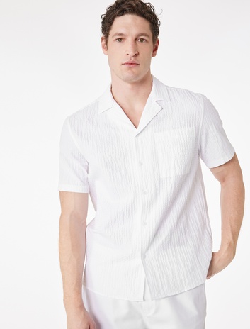 Regular Fit Kısa Kollu Cepli Dokulu Devrik Yaka Gömlek Sepete Ekle