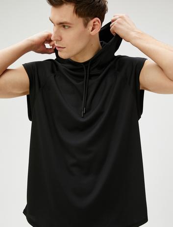 Sporcu Atleti Kapşonlu Dikiş Detaylı Kolsuz Bağcık Yakalı