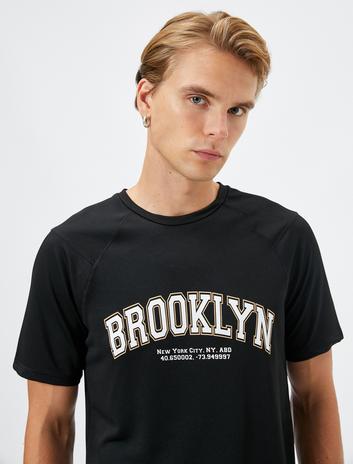 Spor Tişört Slogan Baskılı Bisiklet Yaka Kısa Kollu
