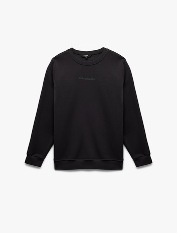 Yazı Baskılı Sweatshirt Bisiklet Yaka