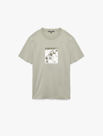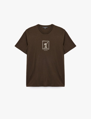 Regular Fit Kısa Kollu Bisiklet Yaka Yıkamalı Pamuklu Baskılı Tişört Sepete Ekle
