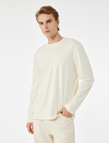 Pamuklu Bisiklet Yaka Basic Uzun Kollu Tişört