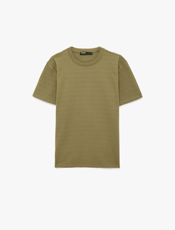 Kısa Kollu Dokulu Bisiklet Yaka Pamuklu Slim Fit Tişört Sepete Ekle