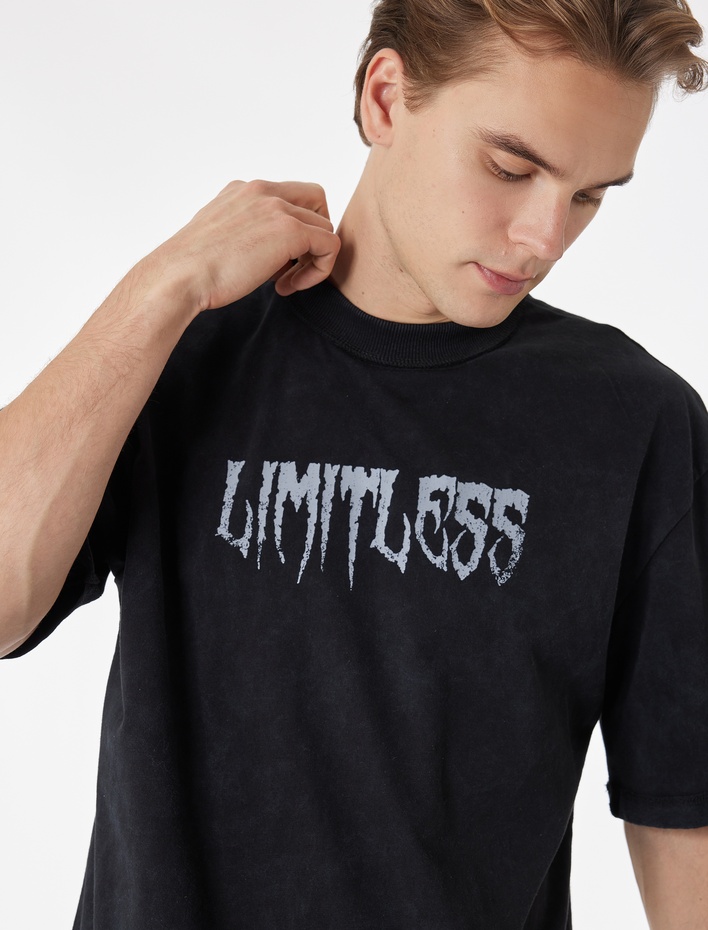 Pamuklu Kısa Kollu Yıkamalı Bisiklet Yaka Oversize Baskılı Tişört Sepete Ekle