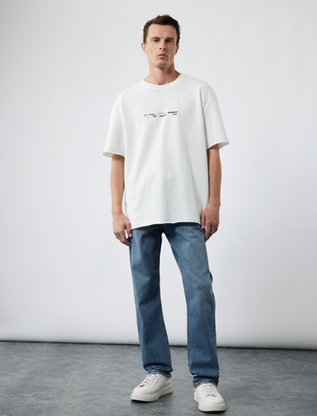 Bisiklet Yaka Regular Fit Pamuklu Kısa Kollu Slogan Baskılı Tişört Sepete Ekle