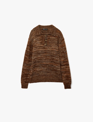 Polo Yaka Düğme Detaylı Uzun Kollu Kışlık Triko Kazak