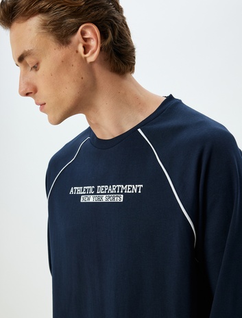 Slogan Baskılı Tişört Uzun Kollu Bisiklet Yaka Pamuklu