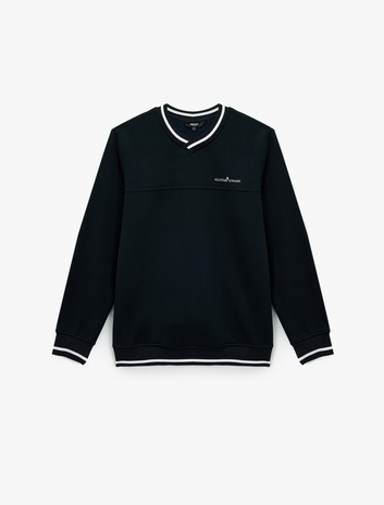 Regular Fit Uzun Kollu Çizgi Detaylı Şardonlu V Yaka Sweatshirt