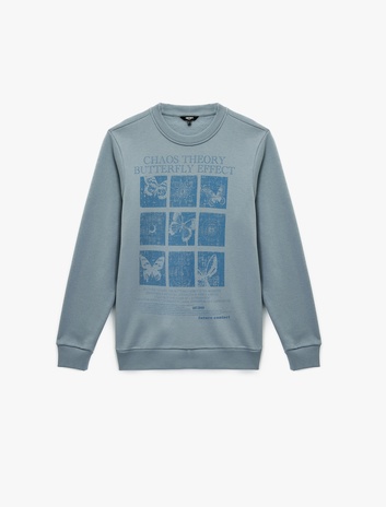 Uzun Kollu Basic Bisiklet Yaka Baskılı Sweatshirt