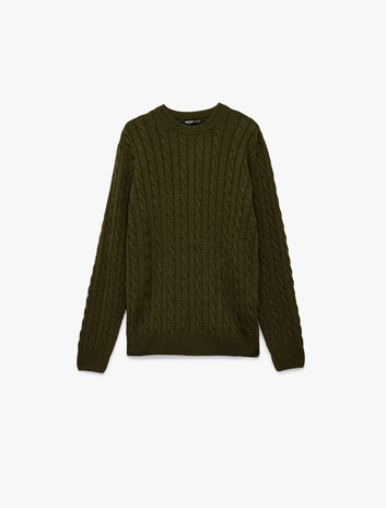 Uzun Kollu Bisiklet Yaka Saç Örgüsü Dokulu Triko Kazak Sepete Ekle