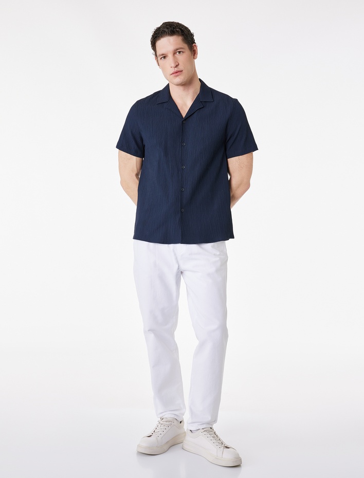 Regular Fit Kısa Kollu Apaş Yaka Viskon Keten Karışımlı Gömlek Sepete Ekle