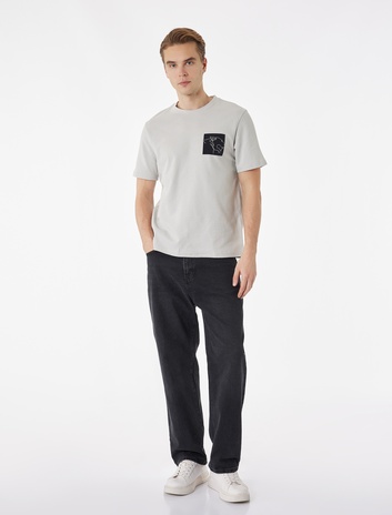 Regular Fit Kısa Kollu Pamuklu Yıkamalı Bisiklet Yaka Baskılı Tişört Sepete Ekle