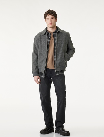 Regular Fit Uzun Kollu Cepli Pamuklu Gömlek Yaka Fermuarlı Fitilli Kadife Ceket